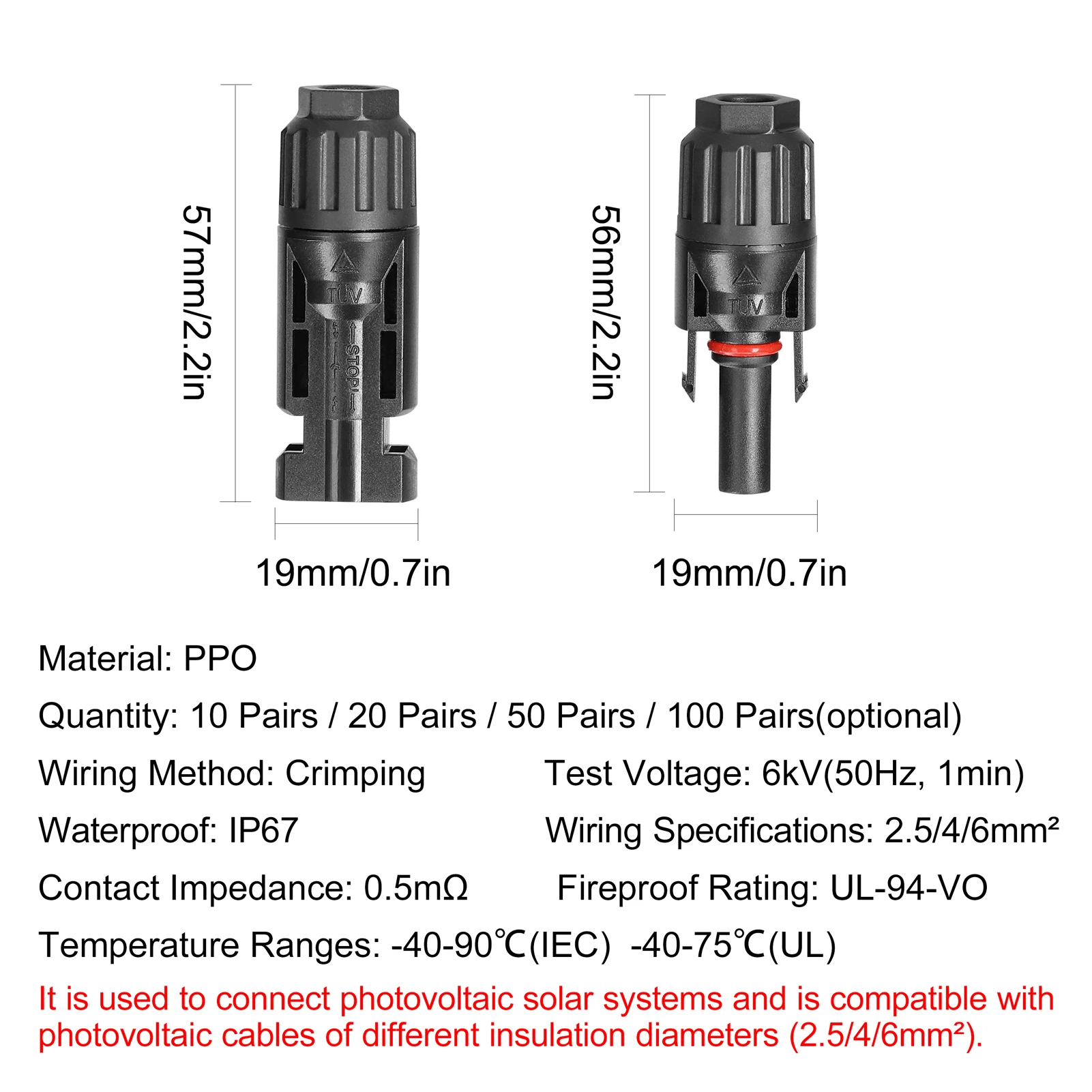 -Compatible with PV cables with different insulation diameters